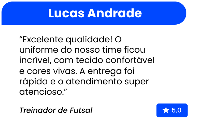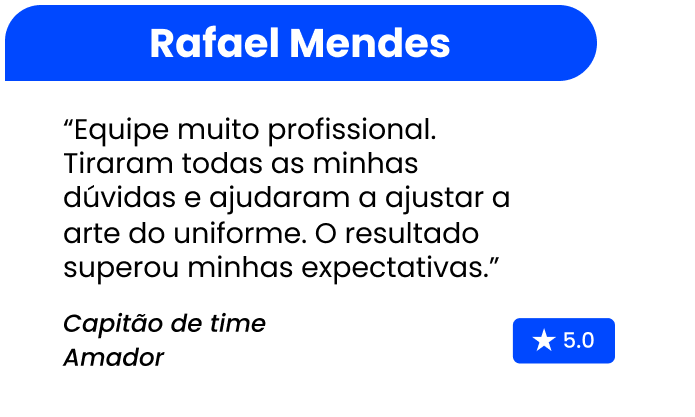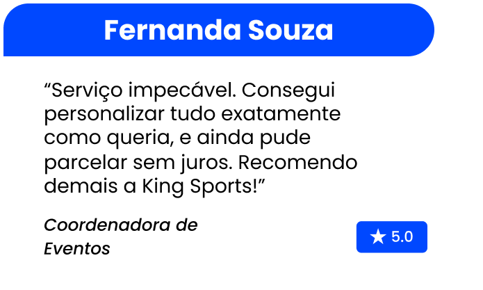 Centenas de equipes e empresas já confiaram na King Sports para criar seus uniformes. Veja a experiência de quem já personalizou com a gente.